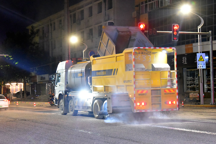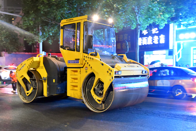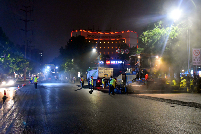 為加快施工進(jìn)度,最大程度地減少對周邊居民的影響,自進(jìn)駐施工以來,項目部克服交通壓力大,天氣炎熱,沿線車輛多等困難,投入施工技術(shù)人員和交通協(xié)管人員20余人,銑刨機、挖掘機、攤鋪機、壓路機、各類運輸車輛等機械設(shè)備30余臺,采取半幅施工的方式,24小時晝夜奮戰(zhàn)。6月16日晚,為保證最后階段的瀝青混凝土攤鋪施工,公司從各部門抽調(diào)人員協(xié)助項目現(xiàn)場的交通管理,全力保障倉庫路提前完工通車。