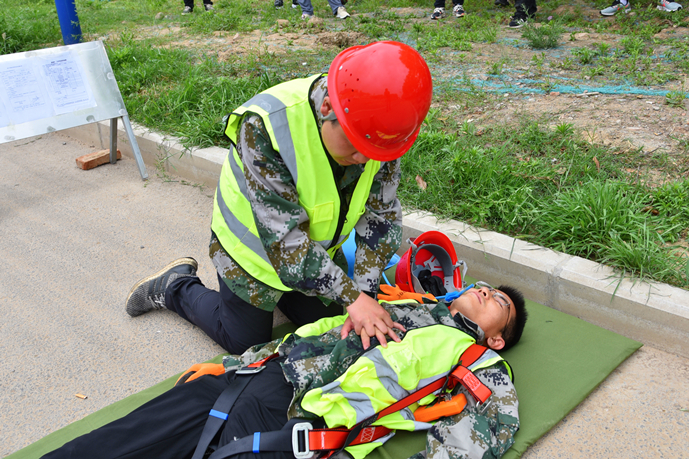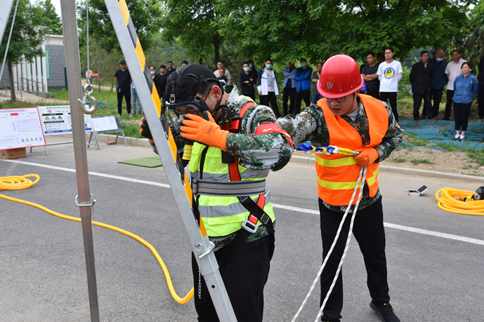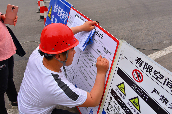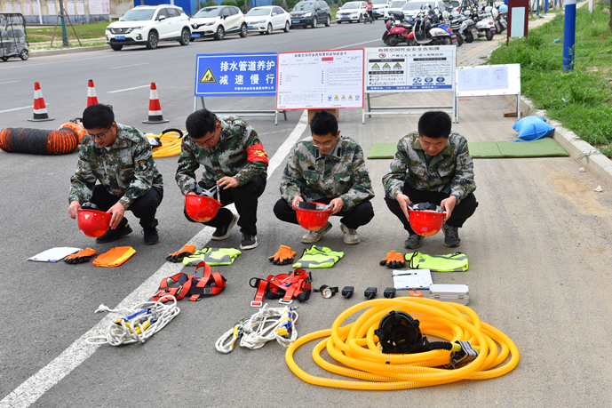 “各參演人員就位,演練開始!”隨著演練指揮長的一聲令下,演練正式開始。作業(yè)區(qū)域內(nèi),作業(yè)人員將施工標志牌、導(dǎo)向標、爆閃燈等警示標志放在適當顯眼的位置,按照地下空間作業(yè)安全操作流程的要求,相互配合完成各項作業(yè)任務(wù)。演練模擬了作業(yè)人員下井作業(yè)時受有害氣體侵擾的突發(fā)情況。期間,地面同伴發(fā)現(xiàn)地下作業(yè)人員發(fā)生危險,立即向指揮長匯報情況,指揮長收到匯報后迅速啟動《地下有限空間作業(yè)應(yīng)急救援預(yù)案》,并派出救援組攜帶救援物資緊急趕往現(xiàn)場救援。