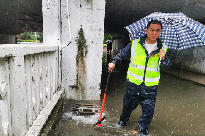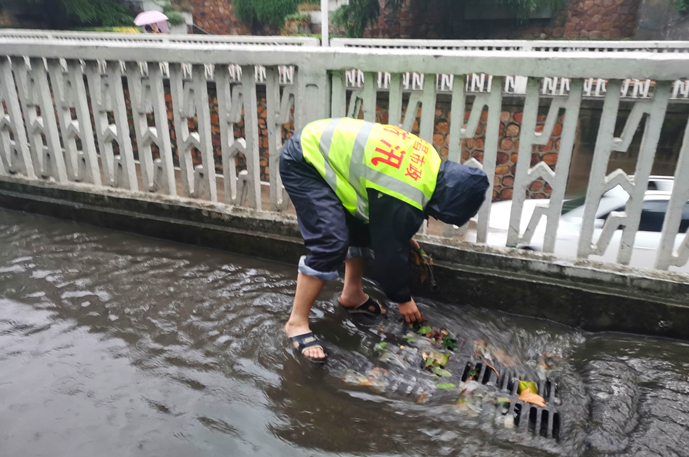 防汛應(yīng)急抽升隊(duì)對(duì)道路積水緊急排水,最大限度保證市民正常通行;巡視分隊(duì)對(duì)路面井蓋進(jìn)行不間斷巡查,及時(shí)消除安全隱患。